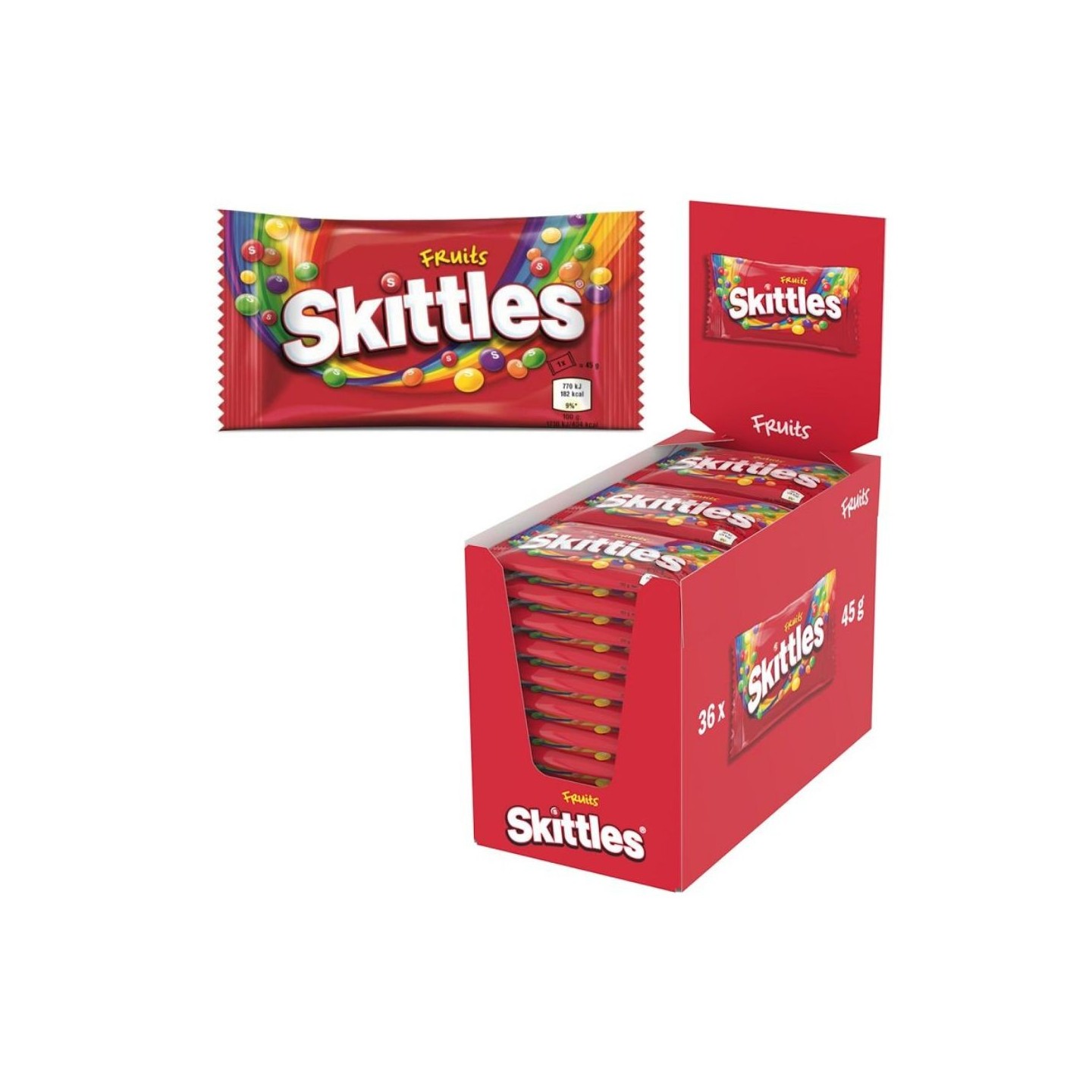 Composition : sucre, sirop de glucose, graisse de palme, acidifiants (acide citrique, acide malique), dextrine, maltodextrine, arômes, amidon modifié, colorants (E162, E163, E170, E160a, E100, E132, E133), correcteur d’acidité (citrate trisodique), agent d’enrobage (cire de carnauba).